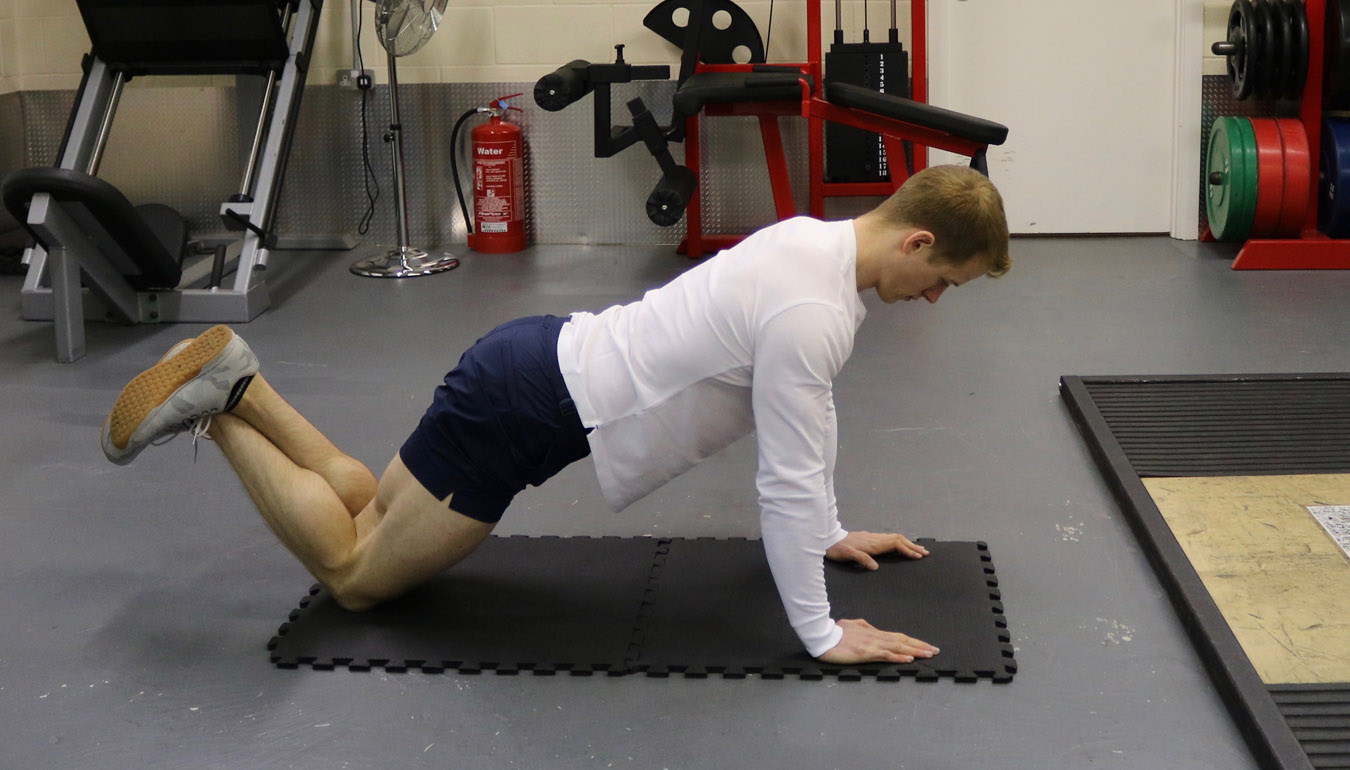 Basics first. Whatever else you’ve been told, a proper press-up starts with your feet fairly close together, body in a straight line, and your arms locked out. Your hands can be directly under your shoulders or slightly outside of them, but your elbows, when you drop, should stay as tucked to your sides as possible: it keeps the strain on your triceps and off your rotator cuffs.